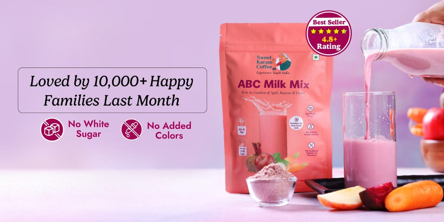 Need a perfect, aromatic cup of coffee to wake you up? Sweet Karam Coffee is here with another classic product - the best South Indian filter coffee powder, delivered to your doorstep. For those of you who are looking to get some extra nutrition in your diet, we have a range of health mixes made with natural ingredients such as this millet badam milk mix and apple beetroot carrot nutri mix.